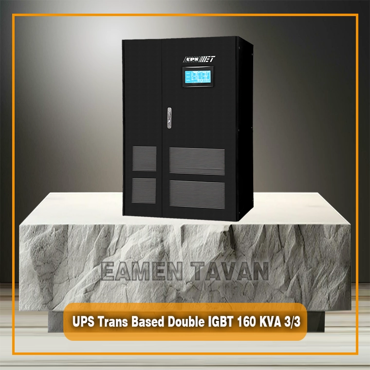 یو پی اس 160 کاوا آنلاین دابل کانورژن ترانس بیس (دابلIGBT) (UPS Online Transformer Based Double IGBT) سه فاز با ورودی و خروجی کاملا ایزوله و مجهز به IGBT در ورودی (Rectifier ) و در خروجی (Inverter ) با کنترل دیجیتال (DSP) با هارمونیک خروجی بسیار کم (PWM) مناسب برای تجهیزات حساس و مهم می باشد.