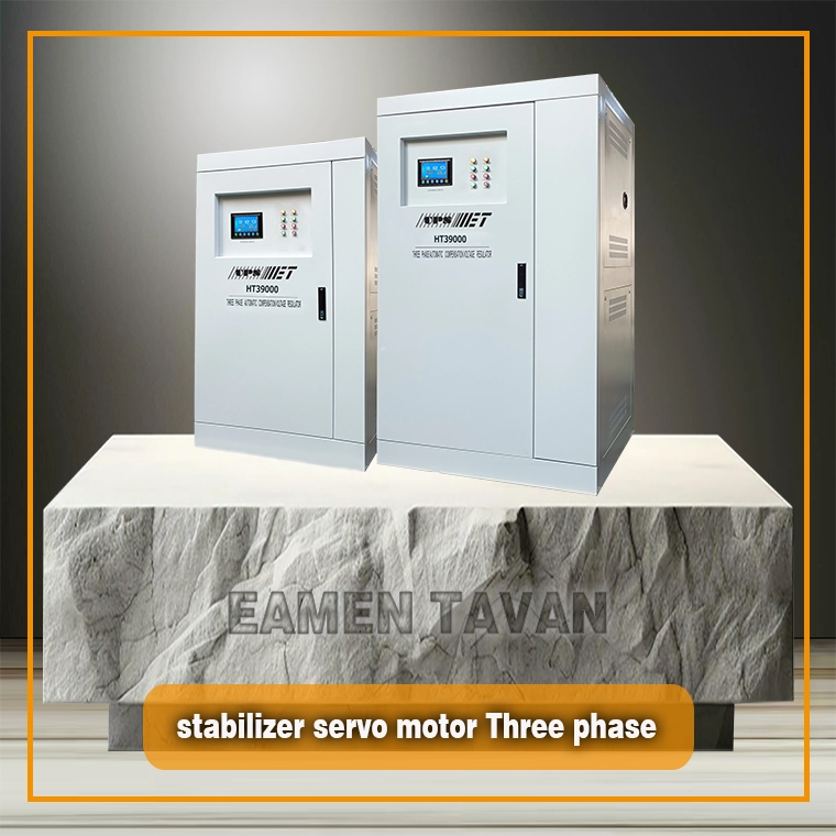 دستگاه استابلایزر سه فاز سروو موتور مدل ایستاده به همراه صفحه نمایش دیجیتال LED است که دارای رگولاتور دقیق جهت تنظیم ولتاژ و تامین افت ولتاژ می باشد لذا این مدل دستگاه به غیر از ترانسفورماتور تنظیم و دارای ترانسفور ماتور جبران میباشدکه توانایی بهتری جهت تثبیت ولتاژ در خروجی دارد البته مزیت این مدل از دستگاه ها ، تحمل نامتعادل بودن مقدار ولتاژ بین سه فاز و اصلاح ولتاژ در کمترین مقدار نوسان می باشد .
